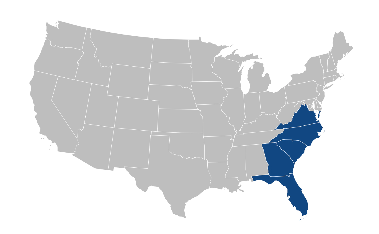 With locations in Mulberry, FL, and Fayetteville, NC, we proudly serve the Southeast areas across Florida, Georgia, North Carolina, South Carolina, and Virginia.